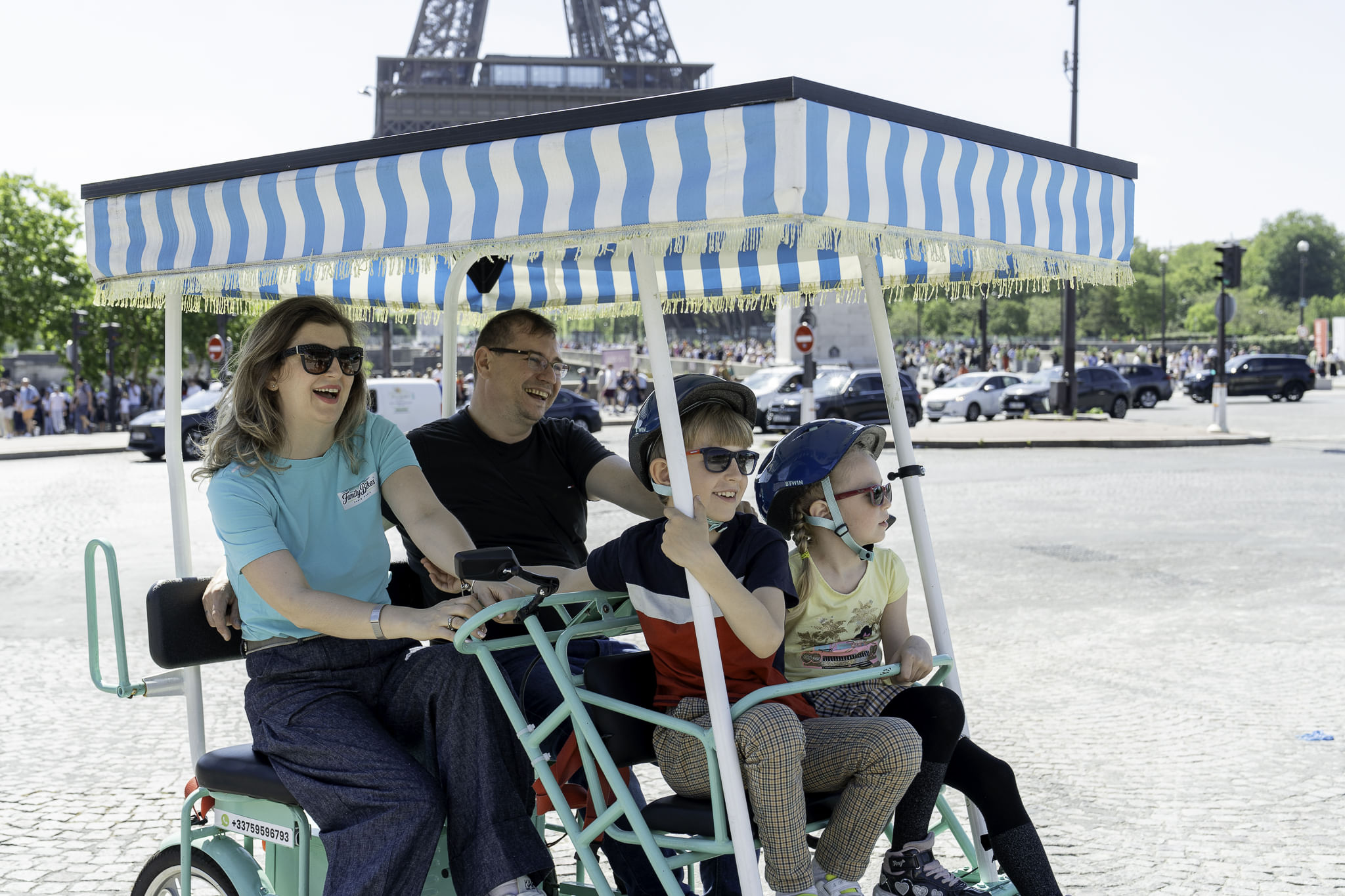 Our bikes accommodate two adults and three children, ensuring a safe and fun family adventure. We provide helmets and multilingual guidance (French, English, Romanian, Italian) for a smooth start. No guide needed – follow the suggested route or choose your own path.